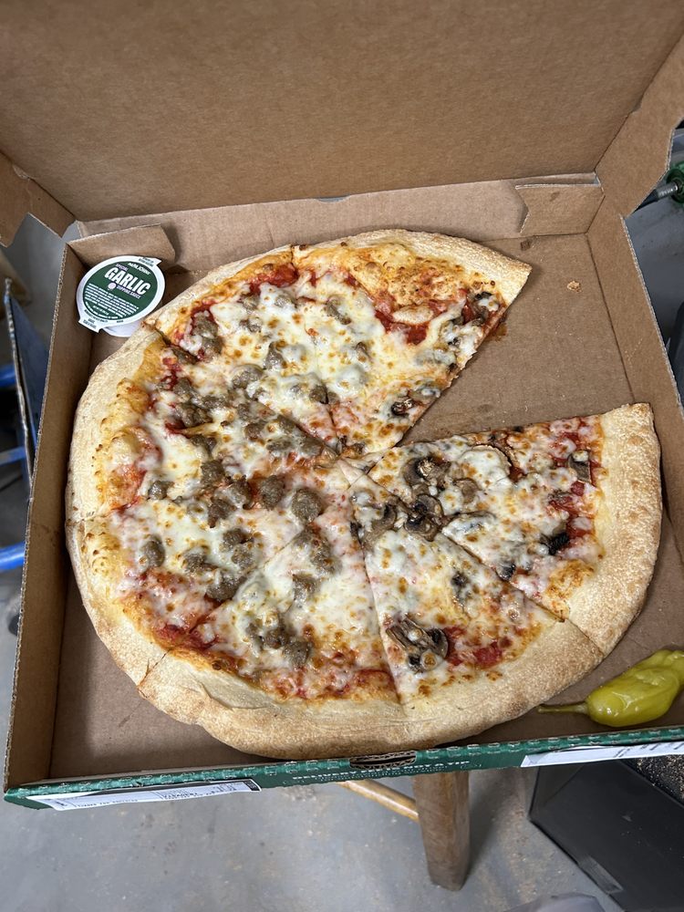 It's everything you want on a pizza - and then some. A heaping helping of premium pepperoni, julienne-cut Canadian bacon, spicy Italian sausage, fresh-sliced onions, crisp green peppers, Crimini mushrooms and ripe black olives. When you're hungry for a hearty pizza, the Works always works.