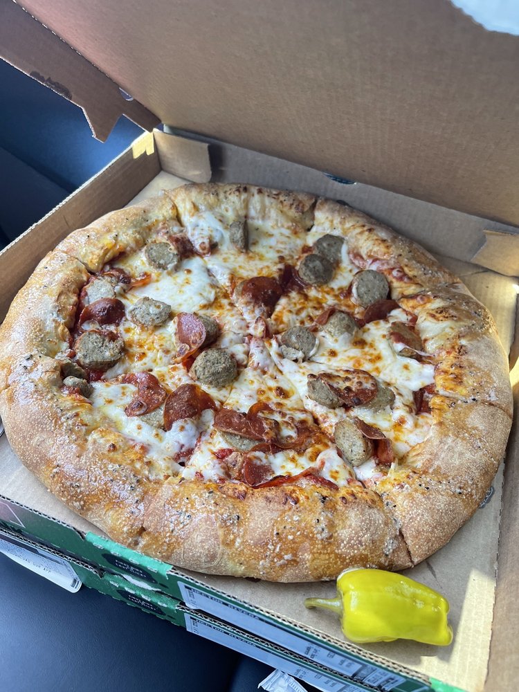 Spice things up with a double portion of Italian sausage plus premium pepperoni and 100% real cheese made from mozzarella, all on our signature pizza sauce and hand-tossed original crust. Served with crushed red pepper for an extra kick.